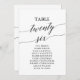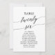 These elegant black table number 26 seating chart cards are perfect for a simple wedding. The neutral design features a minimalist card decorated with romantic and whimsical typography. The card prints on the front and back (double-sided).