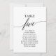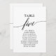 These elegant black table number 5 seating chart cards are perfect for a simple wedding. The neutral design features a minimalist card decorated with romantic and whimsical typography. The card prints on the front and back (double-sided).