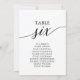 These elegant black table number 6 seating chart cards are perfect for a simple wedding. The neutral design features a minimalist card decorated with romantic and whimsical typography. The card prints on the front and back (double-sided).