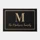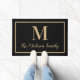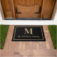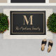 Your bestselling monogram doormat features your initial in refined tan serif typography framed by a classic double-line border with your family name in elegant script on a rich black background with warm gold accents. The luxurious black and tan color combination has proven irresistible to buyers looking for a polished entryway upgrade. A top-selling housewarming and closing gift. All text is fully customizable.