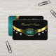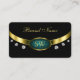 Elegant Black Teal Gold with Monogram and Diamonds Business Card