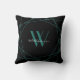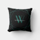 Elegant Black Teal Monogram Geometric Name Script Cushion