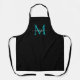 Simple Black Teal Monogram Elegant Feminine Script Apron