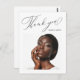 Elegant script graduation thank you photo postcard includes an editable thank you message and return address on the back of the card, and one photo with black thank you calligraphy script on the front. Send your thanks and gratitude to your graduation guests for their presence on your special day, with this classic photo postcard.