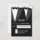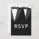 Elegant black tie gay wedding RSVP card featuring refined typography and a timeless, formal design. Perfect for modern couples planning a sophisticated celebration, this stylish reply card complements a classic, upscale wedding with polished elegance.