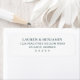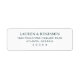 This return address label features a clean, minimalist design with centered text on a white background. The monochromatic color palette uses black serif font for an elegant and formal look, emphasizing clarity and sophistication. With ample spacing between the lines of text, this label is perfect for those who appreciate understated style in their stationery. Ideal for official communications or special occasions, it conveys professionalism while maintaining a refined aesthetic.