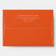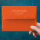 This wedding envelope features a minimalist design with a bold orange background and centered white text, creating a striking contrast. The layout is clean and modern, utilizing ample negative space to highlight the elegant serif typography. Perfect for formal invitations, this design conveys sophistication and simplicity, making it ideal for couples seeking a chic and uncluttered look for their special day.