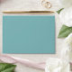 This wedding envelope features a minimalist design with centred text on a solid teal background, creating an elegant and sophisticated look. The layout is simple and balanced, utilising clean lines and precise spacing for a modern feel. The typography employs a classic serif font that adds formality, while the monochromatic colour palette ensures readability and a professional appearance. Perfect for weddings, this envelope conveys clarity and elegance through its straightforward and uncluttered presentation.
