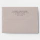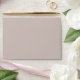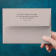 This wedding envelope features a minimalist design with centred text on a soft beige background, creating an elegant and sophisticated look. The layout is clean and simple, emphasizing readability through ample negative space around the classic serif typography. The black text contrasts beautifully against the neutral backdrop, ensuring clarity and formality. Perfect for couples seeking understated elegance, this design focuses entirely on the textual information without any additional decorative elements, making it ideal for conveying important details clearly and effectively.