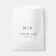 This wedding favour bag features a minimalist design with a clean, centred layout on a white background. The bold serif typography highlights the initials "M" and "K," separated by a vertical line, followed by the phrase "THANK YOU" in slightly smaller letters. Below, a customisable date adds personalisation to this elegant piece. The monochromatic black text creates a sophisticated and professional look, perfect for expressing gratitude at your special event.