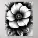 This striking black and white floral artwork features a beautifully detailed large bloom surrounded by layered, textured leaves. The monochrome palette adds a modern and elegant touch, making it perfect for wall art, home decor, apparel, or stationery. Ideal for minimalists, floral lovers, or anyone looking to add a timeless, artistic vibe to their space or product collection