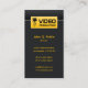 The black video and film production business card is a modern and elegant design. Whether you create professional videos, films or movies, this business card is the right choice for you. The design shows an orange element in the top centre of the business card with a video camera logo and the company name. You are able to adjust the placement of text and logo using the customisation options.
