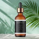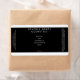 An elegant minimalist cosmetics bottle label with a black background, white text, and a white border. This label contains space for your product name, business name, product weight, ingredients, instructions, social media, and business address. This label measures 3.75 inches by 2 inches (95 mm by 51 mm) and is suitable for bottles with a diameter of 1.2 inches (31 mm) or more such as 2 oz (60 ml) to 4 oz (120 ml) bullet, cylinder, and boston round bottles. It can also be used for cosmetic jars and other types of cosmetics packaging.