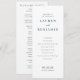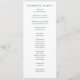 This wedding program features a minimalist and elegant design with a clean white background, emphasizing clarity and simplicity. The layout is structured with ample spacing between elements, showcasing the names in bold serif fonts and ceremony details in a simple sans-serif typeface for easy readability. The colour palette consists of black text on a white backdrop, creating a sophisticated and formal mood perfect for a modern wedding celebration. Customisable sections allow for personalisation while maintaining an understated aesthetic that balances elegance with functionality.