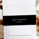 A classic and elegant wedding invitation belly band featuring a black background with refined white typography.