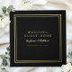 Introducing our elegant and formal wedding keepsake guestbook, crafted with real gold foil on a sophisticated black background. This luxurious guestbook features a sophisticated contemporary minimalist design, highlighted by a double frame border in gold foil. Personalise this exquisite wedding accessory with your details in chic lettering and script. The spine is black and is adorned with gold foil, customised with the couple’s first names and wedding date, adding a personal touch to your special day. The back of the book mirrors the front with two matching gold foil frames, creating a cohesive and stylish look. For added versatility, you can easily change the foil to silver or rose gold, ensuring it perfectly complements your wedding theme. This guestbook is not only a beautiful keepsake but also a timeless addition to your wedding celebration.