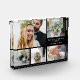 Modern photo block to celebrate your wedding featuring a 5 photo collage and your names and wedding date in elegant white typography against a black background.