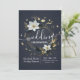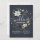 Elegant Black White and Gold Floral Wreath Wedding Invitation