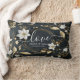 Elegant Black White and Gold Floral Wreath Wedding Lumbar Cushion