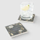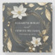 Elegant Black White and Gold Floral Wreath Wedding Stone Coaster