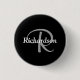 Enjoy this elegant button featuring your name over your monogram in modern script typography on a black background. Text templates are provided for your monogram (in light grey) and name (in white).