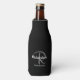 Enjoy this elegant bottle cooler featuring your name over your monogram in modern script typography on a black background. Text templates are provided for your monogram (in light grey), name and optional "Family Reunion" event (in white).
