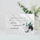 Elegant black white and teal blue flowers RSVP car Card