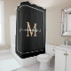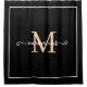 Elegant black and white bordar script monogram name shower curtain ,