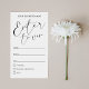Modern Raffle ticket with elegant script fonts, black and white background and space for your event and raffle details. Use this professional enter to win card for your next business or private prize draw. This raffle name card allows you to edit the body text and design colours and you can even add your logo. Use it to make personalised prize draw name cards for your next event, whether it's a business event raffle or a baby shower game, this enclosure card can suit any purpose!