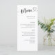 Delight your guests with this elegant black and white wedding menu card, designed with a chic contemporary layout and stylish calligraphy accented by a sweet heart detail. Perfect for any modern or classic celebration, it adds a refined touch to your reception tables. Fully editable and simple to customise, this menu makes personalising your wedding day effortless and beautifully cohesive.