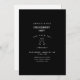 Elegant Black & White Engagement Party Invitation. Back with accommodations option. Champagne toast glasses.