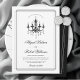 Elegant black and white chandelier Old Money formal wedding invitation. Add a touch of Old Money sophistication to your wedding with this beautifully designed invitation. The front features a vintage-style black chandelier above your custom text, encased in a triple border in black for a refined finish. The reverse side complements this design with a coordinated triple border in white, set against a deep black backdrop. A perfect choice for those seeking timeless grace.