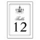 Elegant black and white chandelier Old Money formal wedding table number card. Elevate your wedding's ambiance with this sophisticated black and white chandelier table number card, embodying the essence of Old Money elegance. The design showcases a vintage-inspired black chandelier gracefully positioned above your personalised text, all framed within a refined triple black border that enhances its classic appeal. This exquisite card is sure to add a touch of timeless charm to your formal wedding setting.