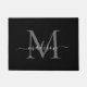 Elegant Black and White Custom Modern Monogram Script Name Doormat