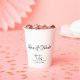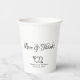 Elegant black white custom script hearts wedding paper cups