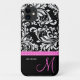 Elegant Black & White Damask Pattern with Monogram Case-Mate iPhone Case
