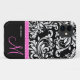 Black and White Damasked Pattern with customised monogram.. Hot Pink Ribbon.