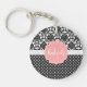 Elegant Black & White Damask Pink Girly Monogram Key Ring