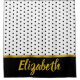 Elegant Black White Dot Pattern Gold Script Name Shower Curtain