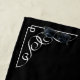 Elegant black & white family name year established beach towel. Custom beachtowel with personalized surname and date. Classy gift idea for him and her, newly weds, honeymooners, friends, family reunion etc. Stylish script typography template with swirly border corners. Chic summer accessories for beach or pool.