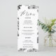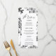 Elevate your wedding reception with this elegant black and white floral menu card. Featuring a beautiful script font for "Menu" and classic typography for dishes, this customisable vertical menu is perfect for listing your starter, main course, and dessert options. A sophisticated touch for any formal event or wedding.