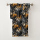 Elegant Black White Gold Floral Repeating Pattern Bath Towel Set