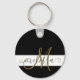 Elegant Black White Gold Monogram Script Name Key Ring