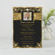 Elegant Black White Gold Pearl Photo Birthday Invitation