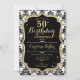 Elegant Black White Gold Photo 50th Birthday Invitation