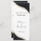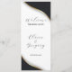 This Elegant Black White Gold Wedding Menu is designed with black script text on a white background with black and gold accents. The front side text includes: Welcome, DINNER MENU, The Bride and Groom's First Names and Wedding Date. The reverse side text includes: The Menu, and a section to insert your full menu from - this sample includes: Appetizer, Entre and Dessert Selections. To personalise, simply insert your details into our easy template replacing the sample text.