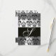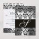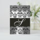 ELEGANT BLACK WHITE GREY DAMASK MONOGRAM RSVP CARD