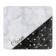 Stylish and modern design featuring faux rose gold triangles, white and black marble.