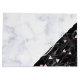Stylish and modern design featuring faux rose gold triangles, white and black marble.