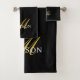 Elegant Black White Monogram Gold Script Bath Towel Set